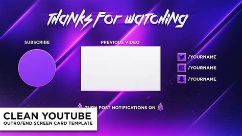 Outro Card Template - For more templates, you can try our free youtube intro maker. Select the one you like, edit the texts, add your logo or create it, and upload your music to get your custom video outro. Use flexclip's free outro maker to create your best video outro in a minute! Do you want to create persuasive outros for your videos? One.